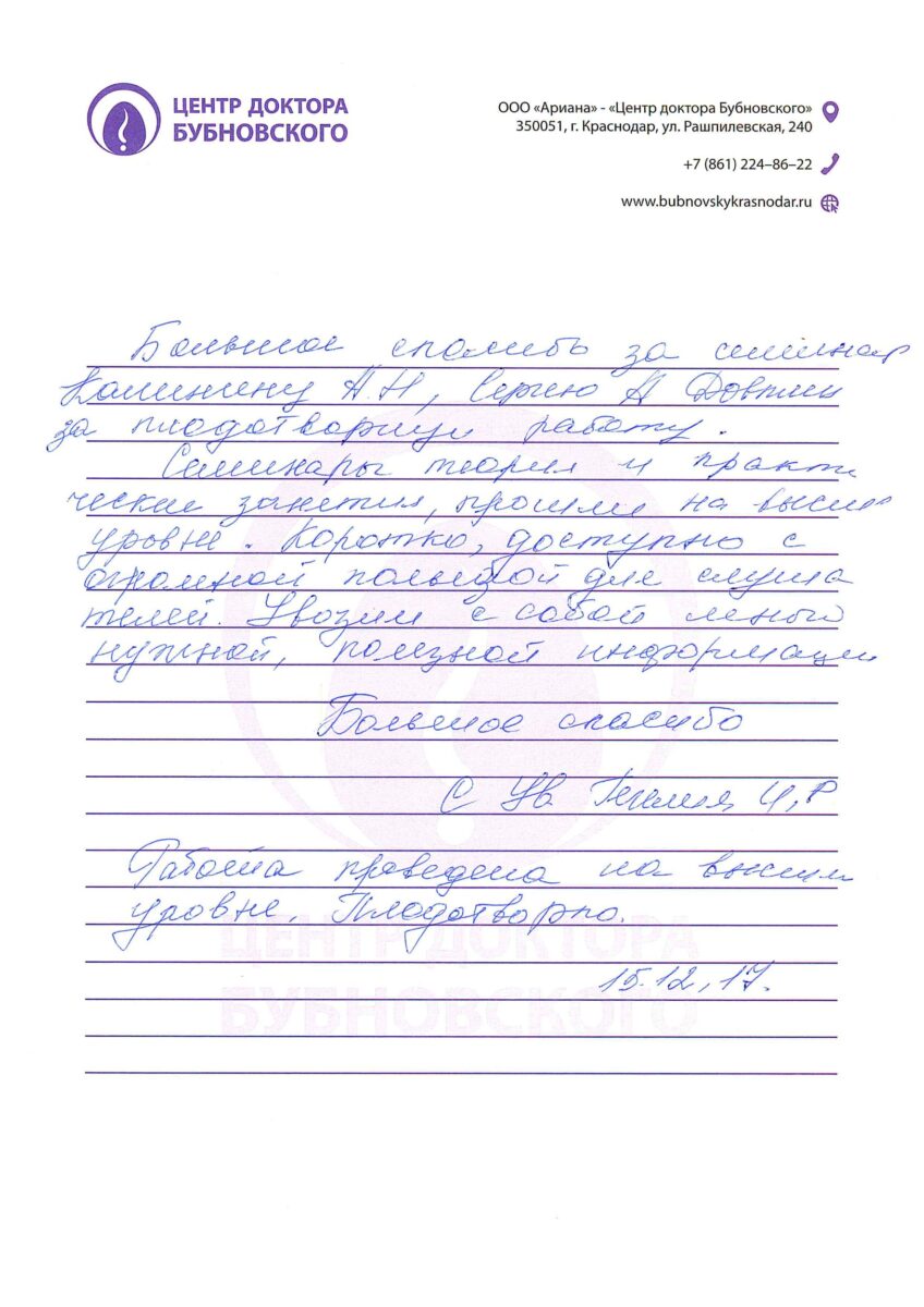 Отзывы учителей о прошедших курсах повышения квалификации в Краснодаре 15.12.2017